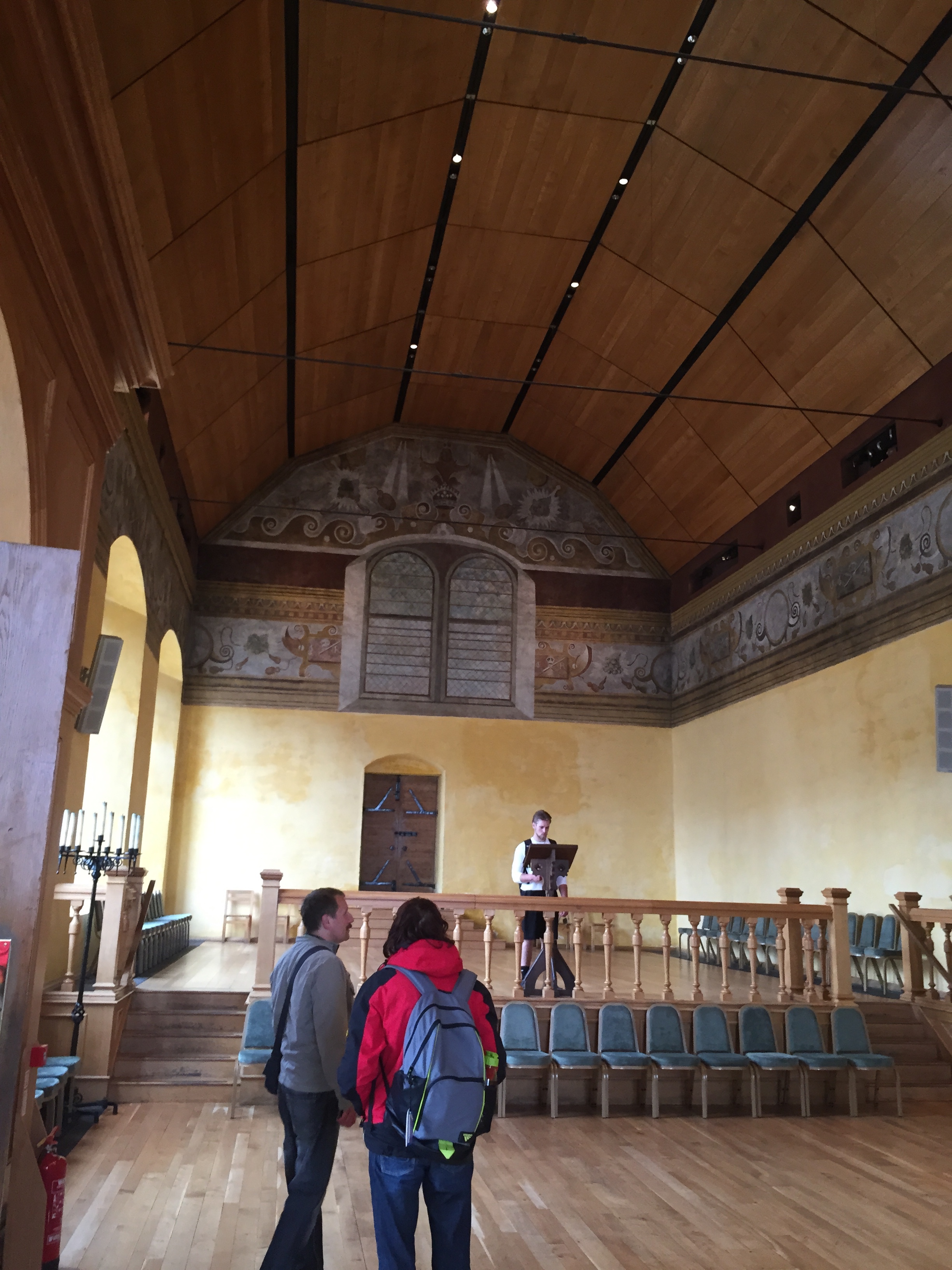 The ceilings in the castle are exquisite. The ceiling in the great hall is a wooden criss cross design.