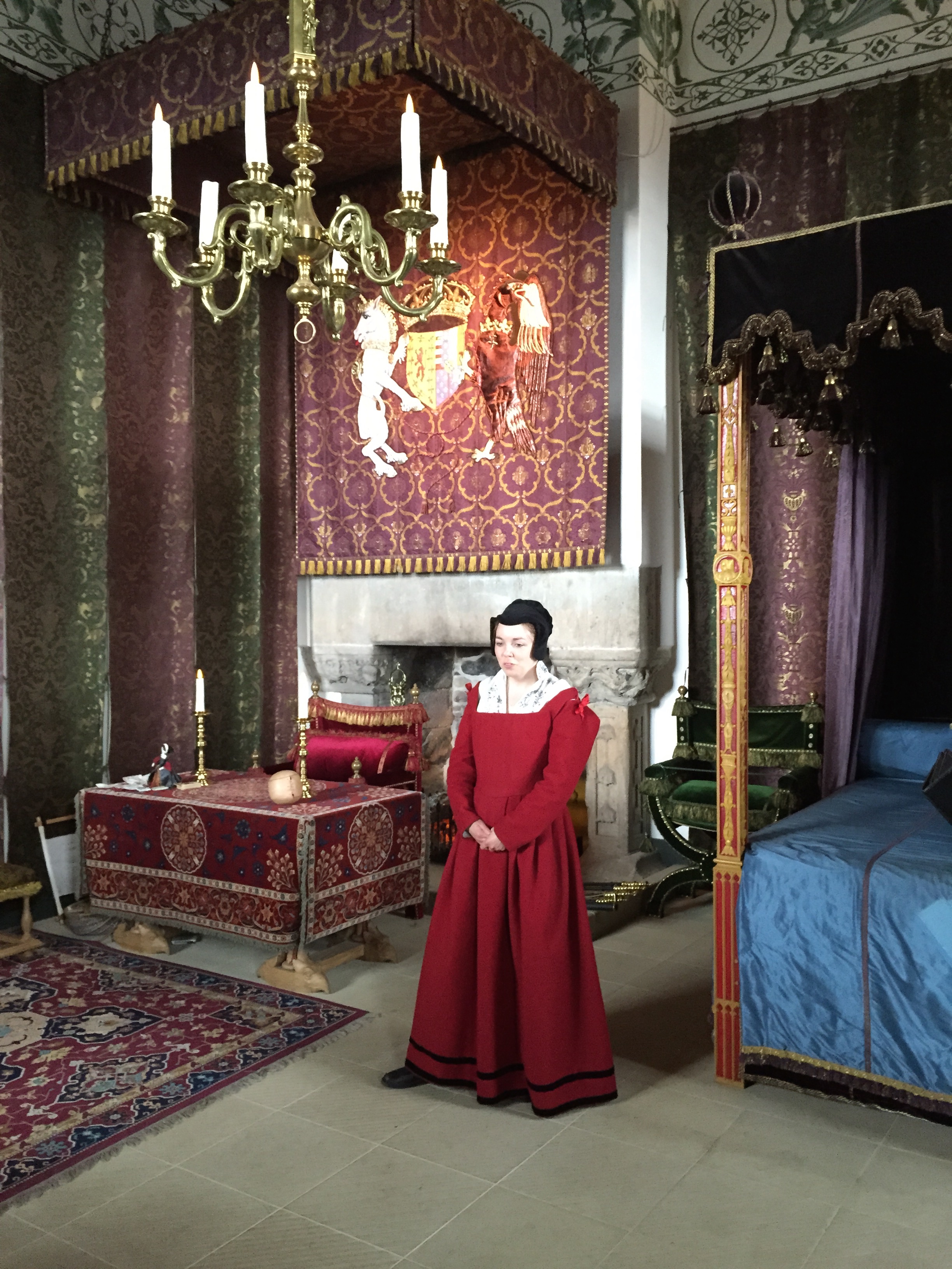 The young woman in the Queen’s chamber room was excellent. She told endless stories of Mary Queen of Scots who lived there as a child and was crowned in Stirling Castle. When only 6 days old, Mary’s father James V died while protecting the Highland Boarders. At 9 months old Mary was crowned queen at Stirling.