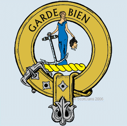The crest shows a woman holding a golden anchor in one hand and a severed head in the other. The golden anchor represents “good luck” or a “good life.” The severed head is one of a savage. The phrase “Garde Bien” means “Look Well.” Some may say I take this motto too seriously. Actually, it means Watch Well or Keep a watchful eye.